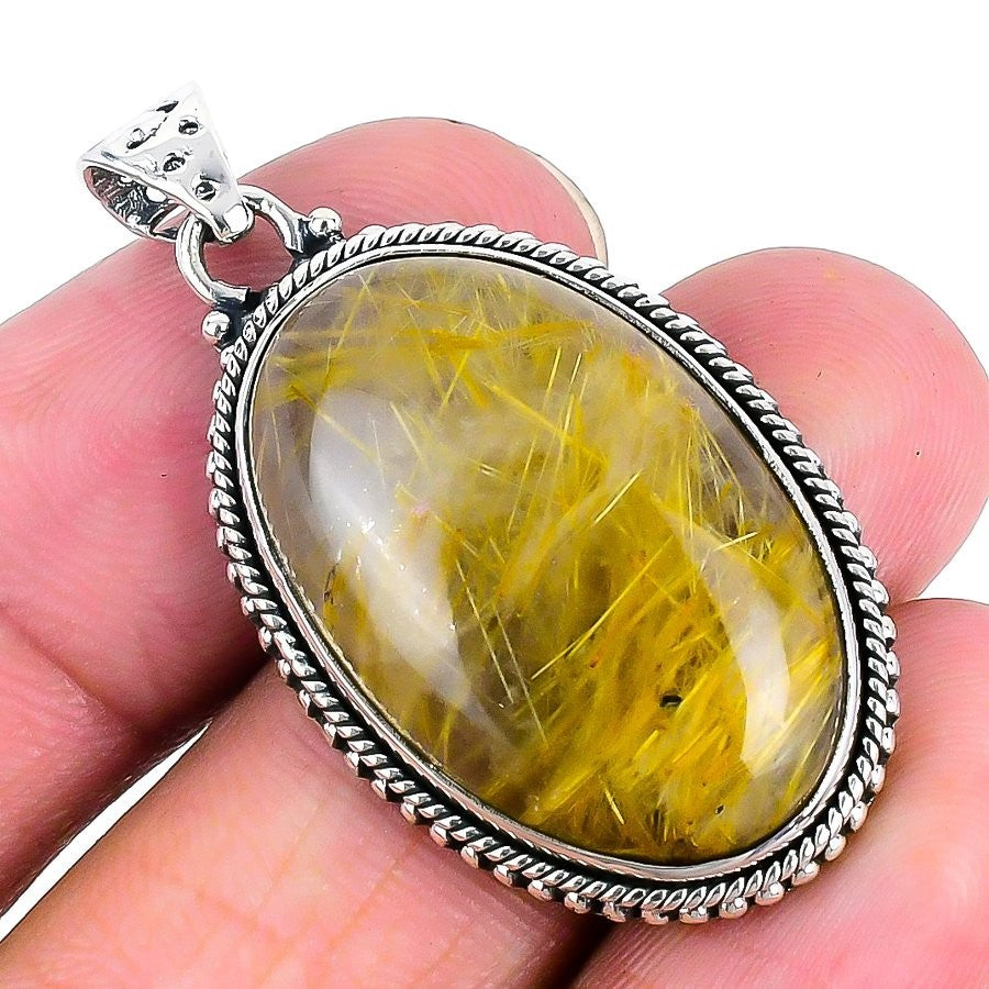 Natural Golden Rutile Solid Silver Bezel Handcrafted Artisan New Pendant Jewelry