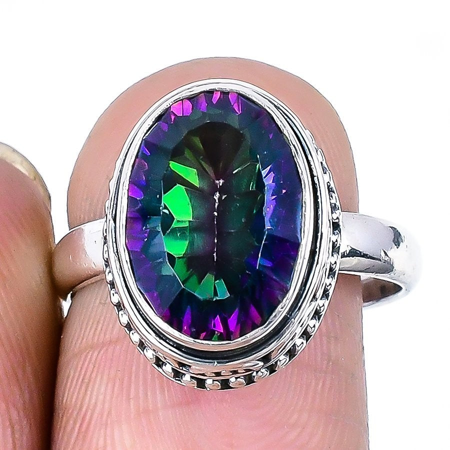 Mystic Rainbow Topaz Gemstone Solid Sterling Silver New Statement Ring Size 8.5