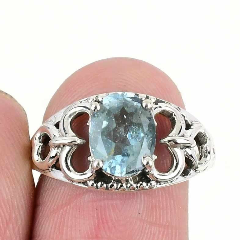 Swiss Blue topaz Stone 925 Sterling Silver Cluster Sister Ring Jewelry Size 7
