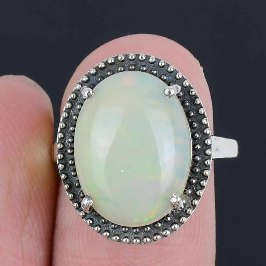 Ethiopian Opal Gemstone Engagement Art Deco Wife Cluster Unique Ring 925 Silver