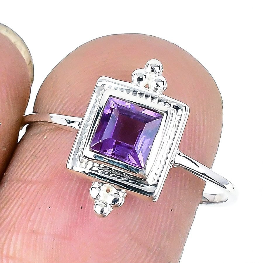 Amethyst Faceted Stone 925Ā SolidĀ Silver Wife Statement Daughter Gift Ring US 7.5