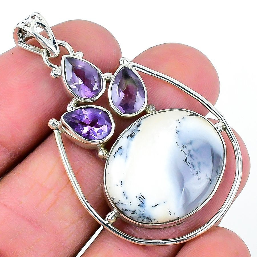 Dendrite Opal Stone 925 Silver Sister Wedding Art Deco Daughters Day New Pendant