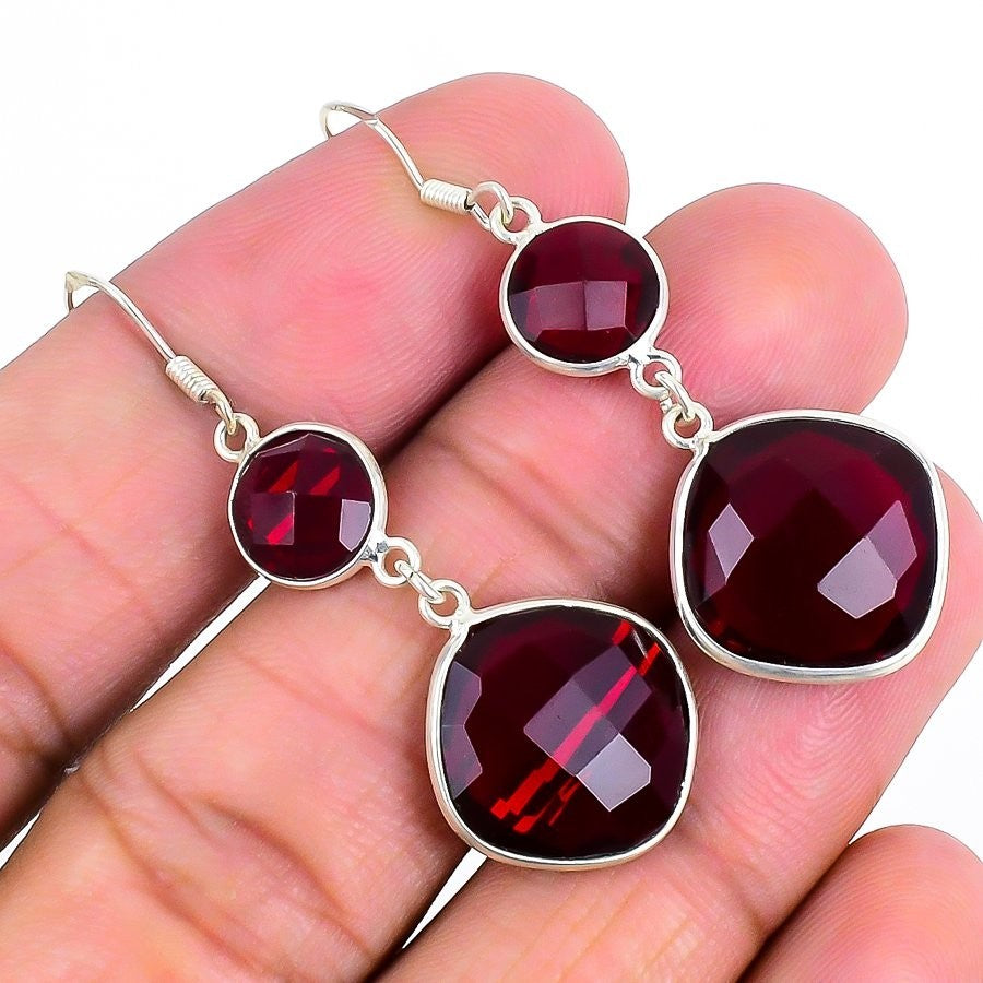 Garnet treated Gemstone 925 Silver Dangle Best Daughters Gift Earrings Jewelry