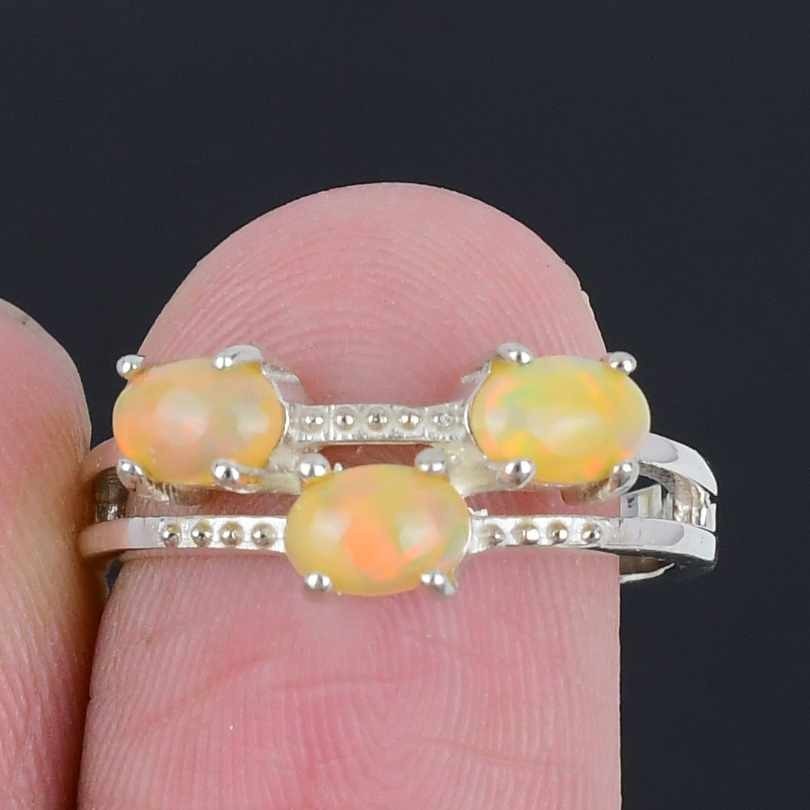 Ethiopian Opal Gemstone Solid Sterling Silver Engagement New Cluster Ring Size 7
