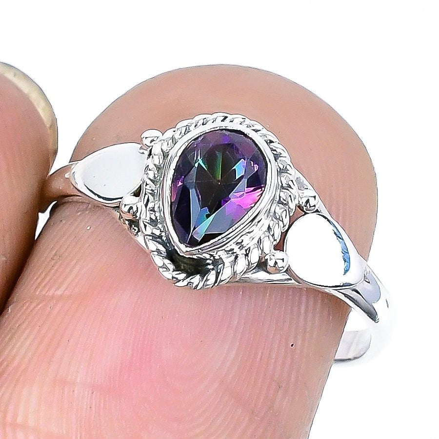 Mystic Topaz Stone Elegant Statement Sister Ring Jewelry Size 7.5 Solid Silver