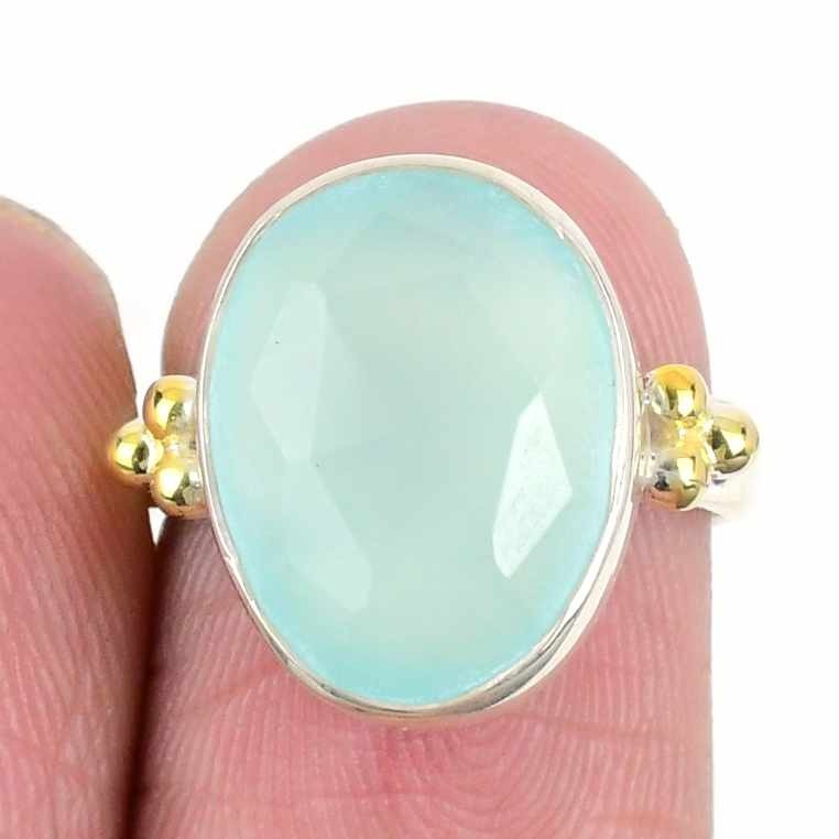Aqua Chalcedony Stone 925 Sterling Silver Cluster Art Deco Ring Jewelry Size 6