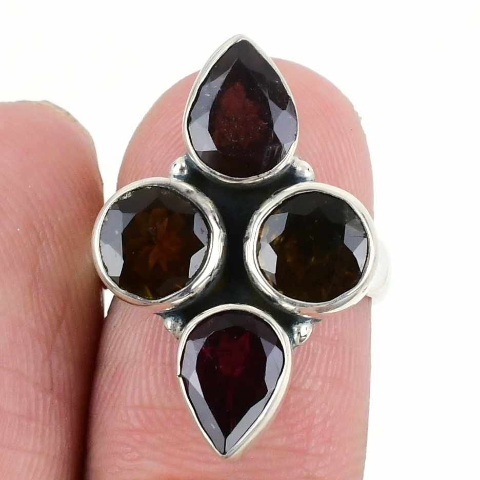 Multi Tourmaline Gemstone Boho Cluster Ring Jewelry Size 6 Solid Sterling Silver