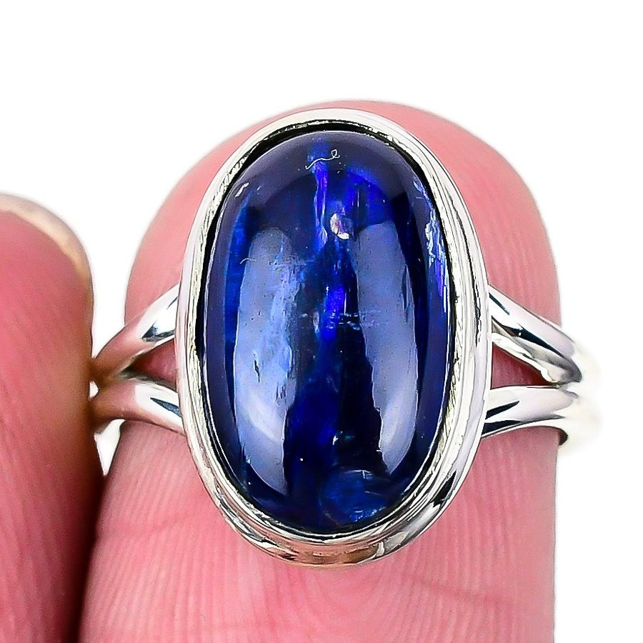 Blue Kyanite Stone Solid Sterling Silver Channel Set Cluster Unique Ring Size 6