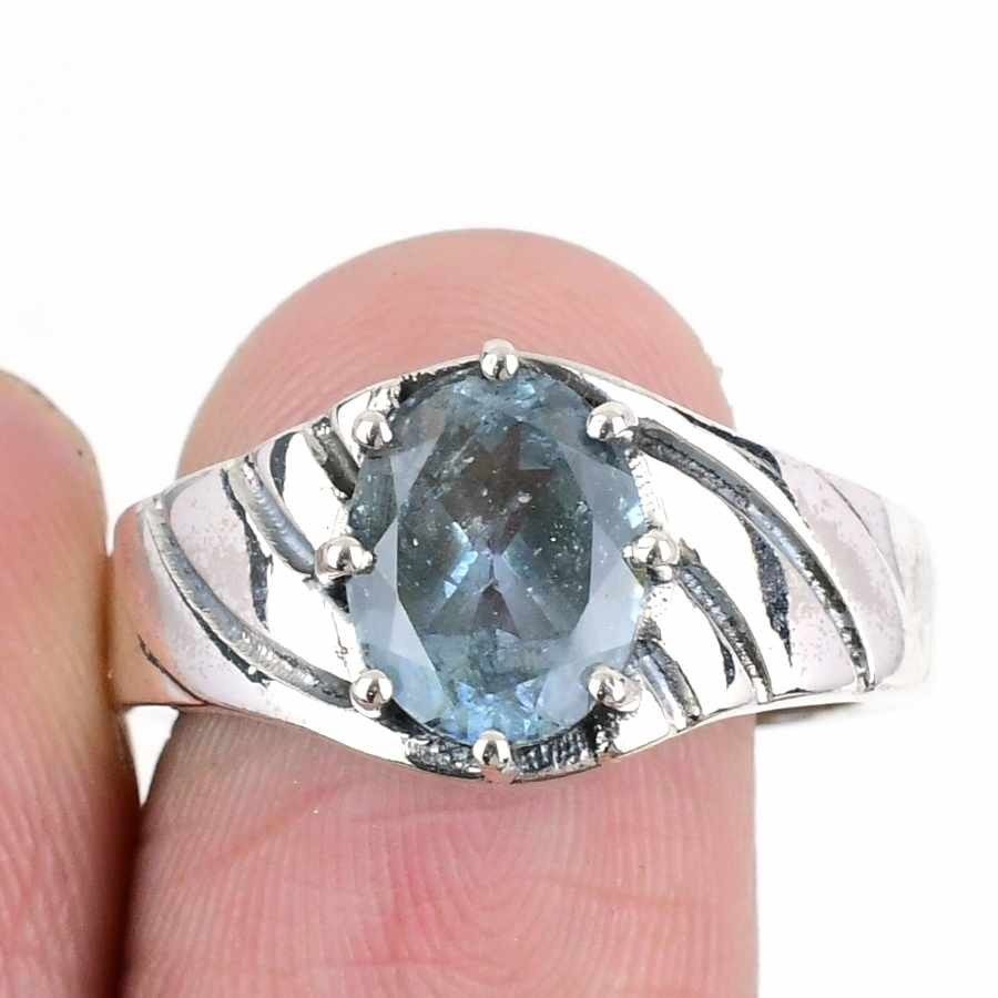 Swiss Blue topaz Stone Sterling Silver Cluster Anniversary Ring Jewelry Size 7