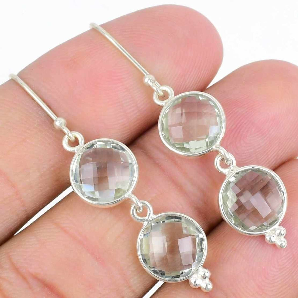 Green Amethyst Gemstone 925 Sterling Silver Hook Drop Artisan Earrings Jewelry