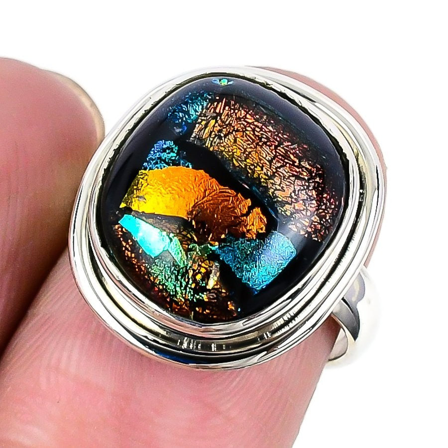Mexican Dico Glass Gemstone 925 Silver Cluster Daughters Day Wife Ring Size 6.5