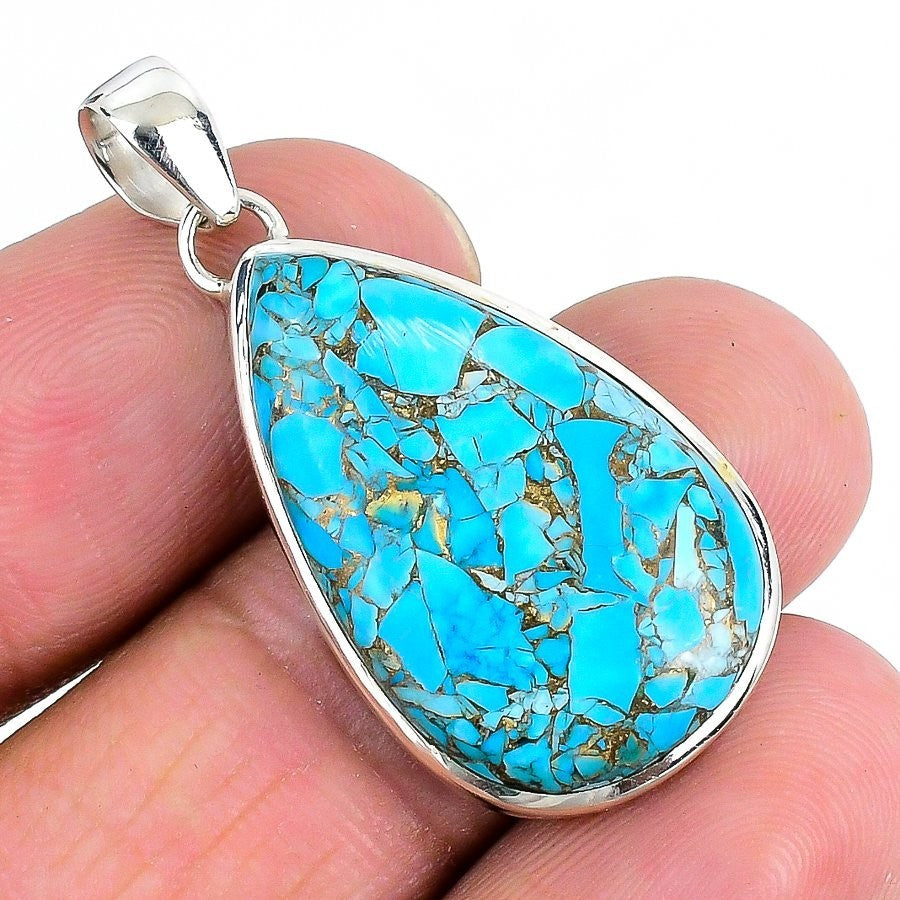 Daughters Day Deal Natural Copper Blue Turquoise New Pendant 925 Sterling Silver