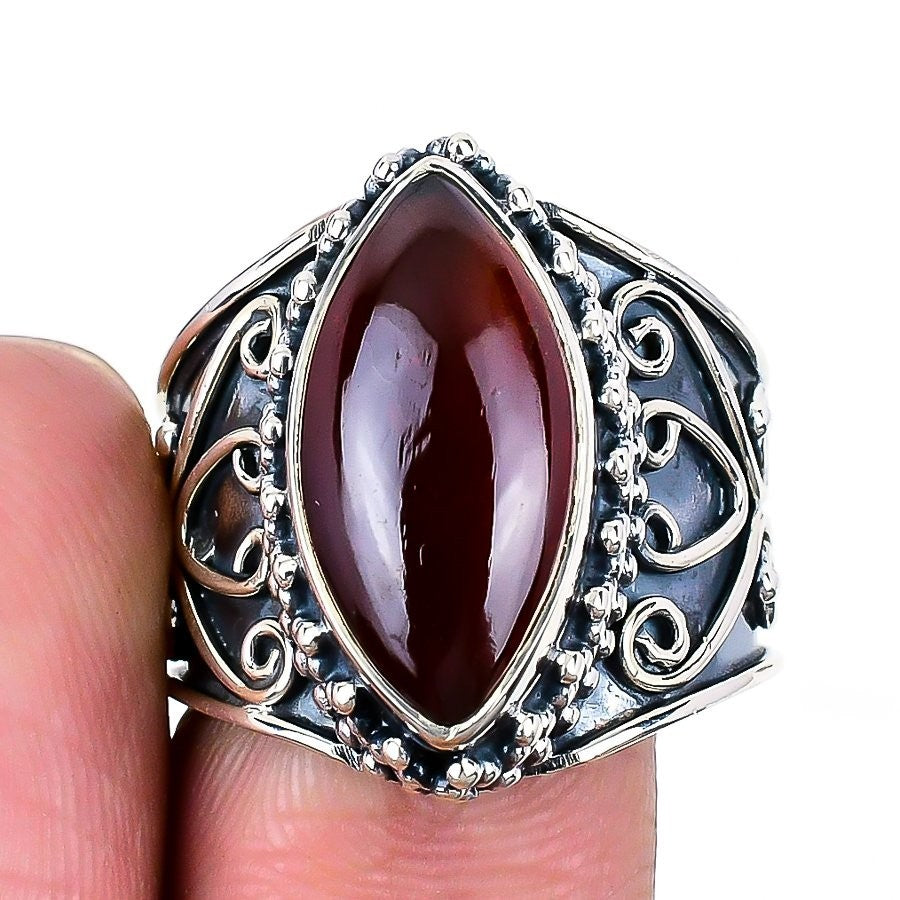 Hessonite Garnet Stone 925 Solid Silver Birthday Statement Ring Jewelry Size 9.5