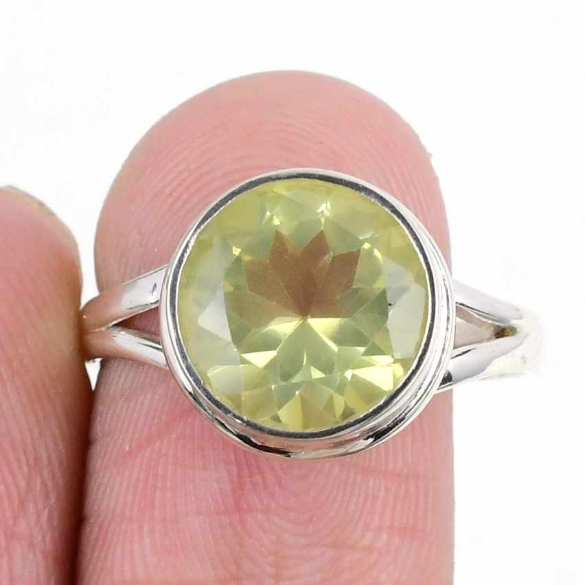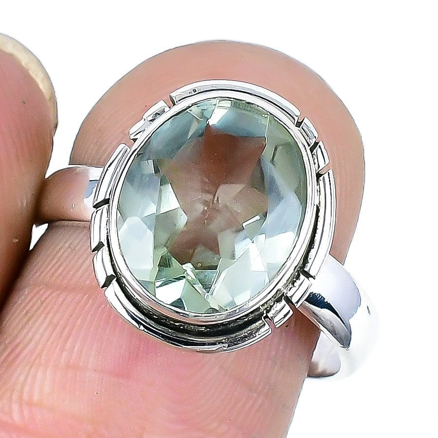 Green Amethyst Faceted Stone 925 Silver February Statement Sister Ring Jewelry
