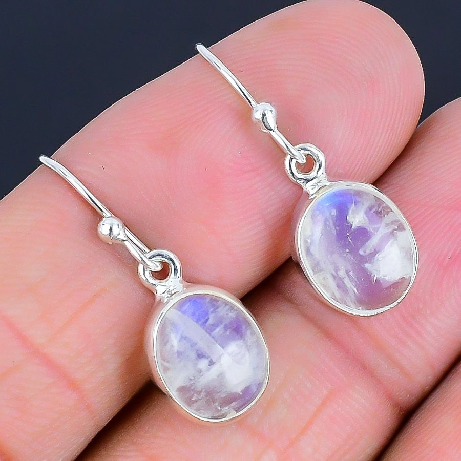 Natural Rainbow Moonstone 925 Sterling Silver Dangle Drop Hook Earrings Jewelry