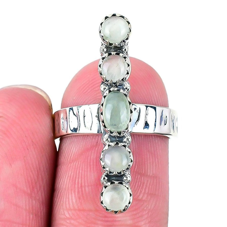 Natural Rainbow Rainbow Moonstone Solid Silver Daughter Cluster Boho Ring Size 8