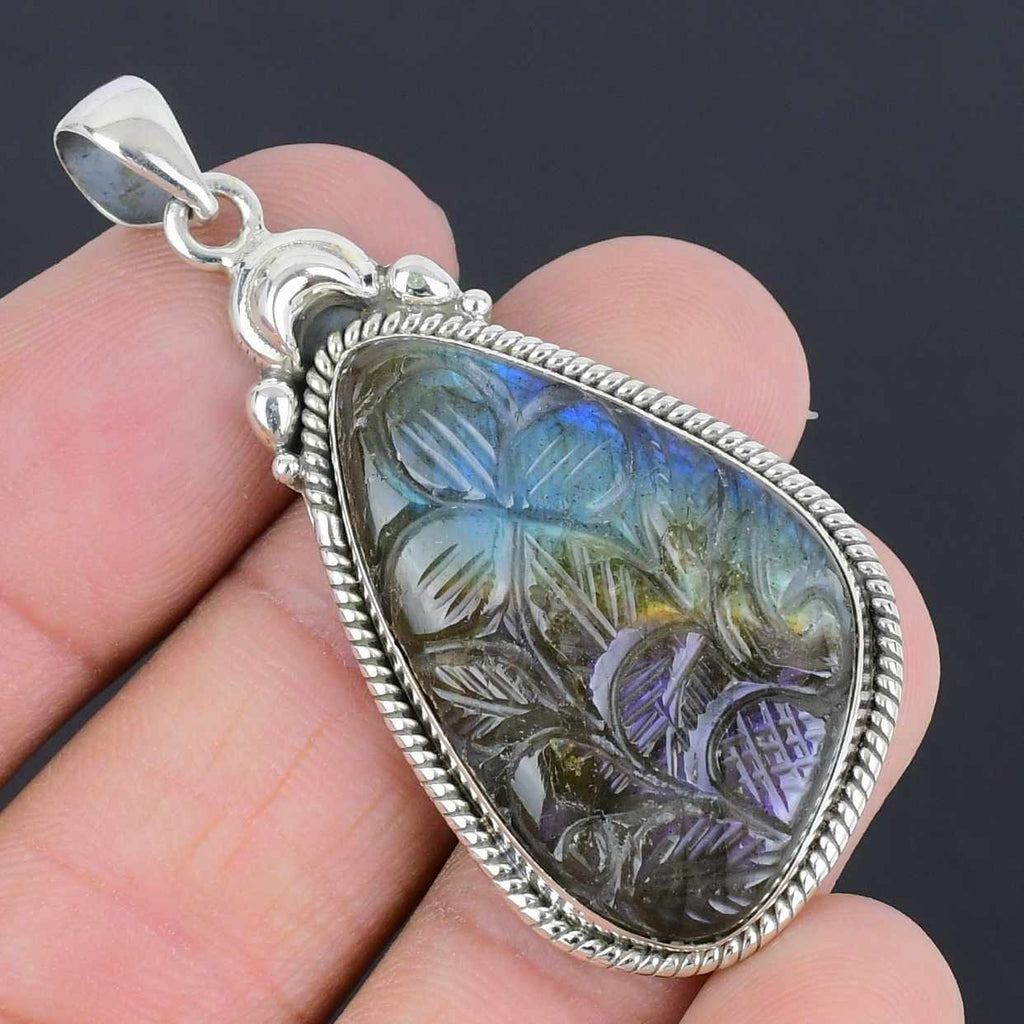 Labradorite Carving Gemstone Sterling Silver Handcrafted Daughter Trendy Pendant