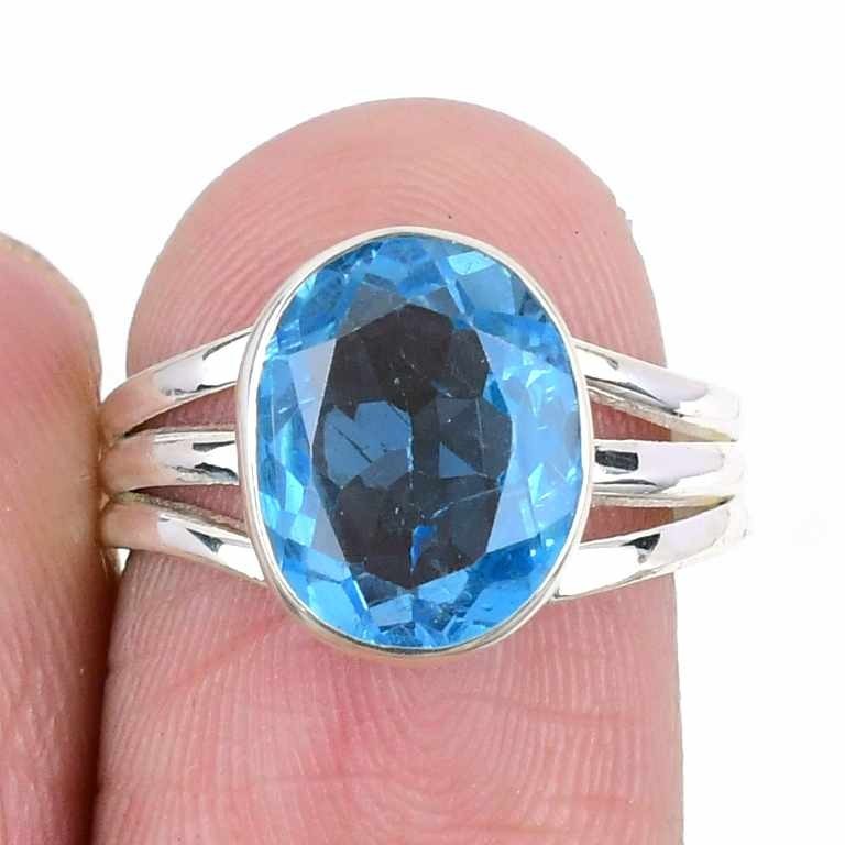 Swiss Blue topaz Stone Sterling Silver Engagement Sister Cluster New Ring Size 9