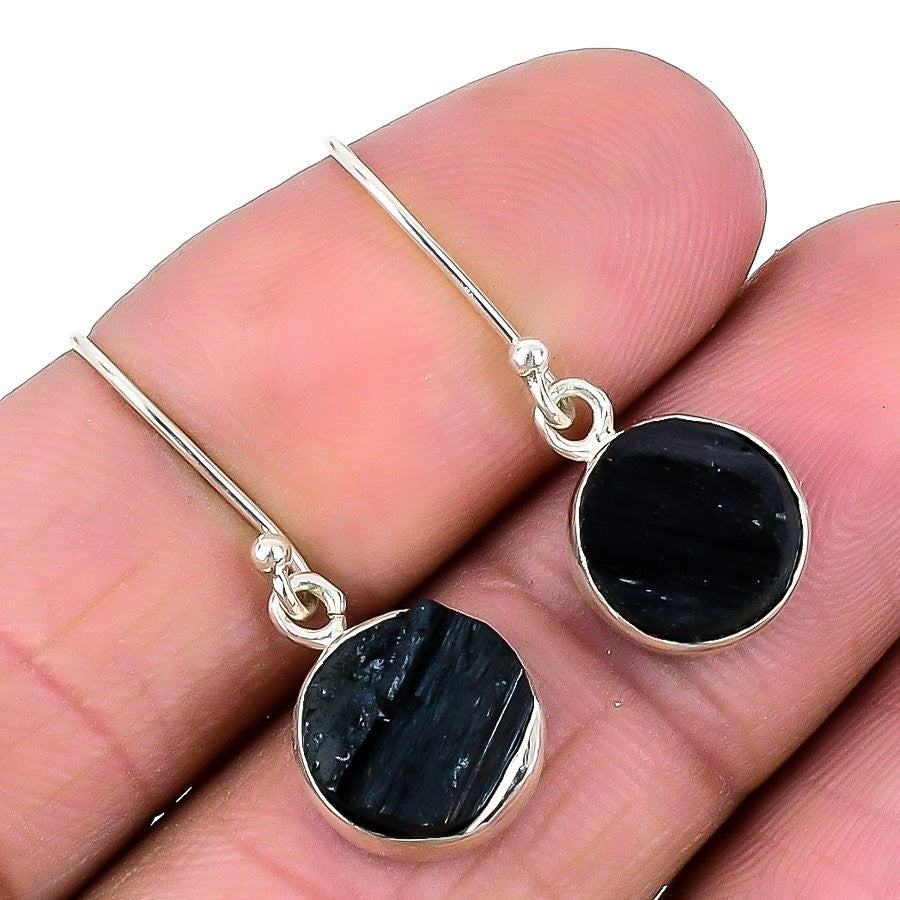 Natural Black Tourmaline 925 Silver Dangling Daughter Elegant New Boho Earrings