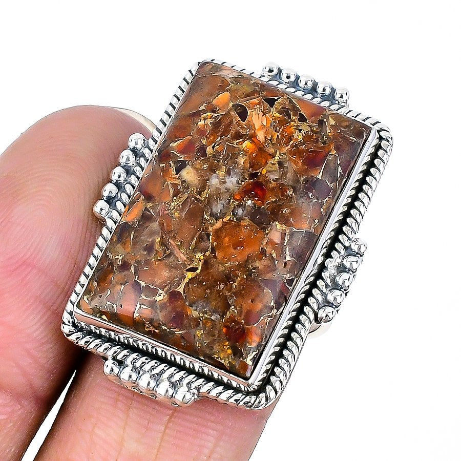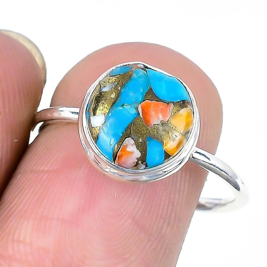Spiny Oyster Gemstone Solid Silver Trendy Statement Elegant Ring Jewelry Size 9
