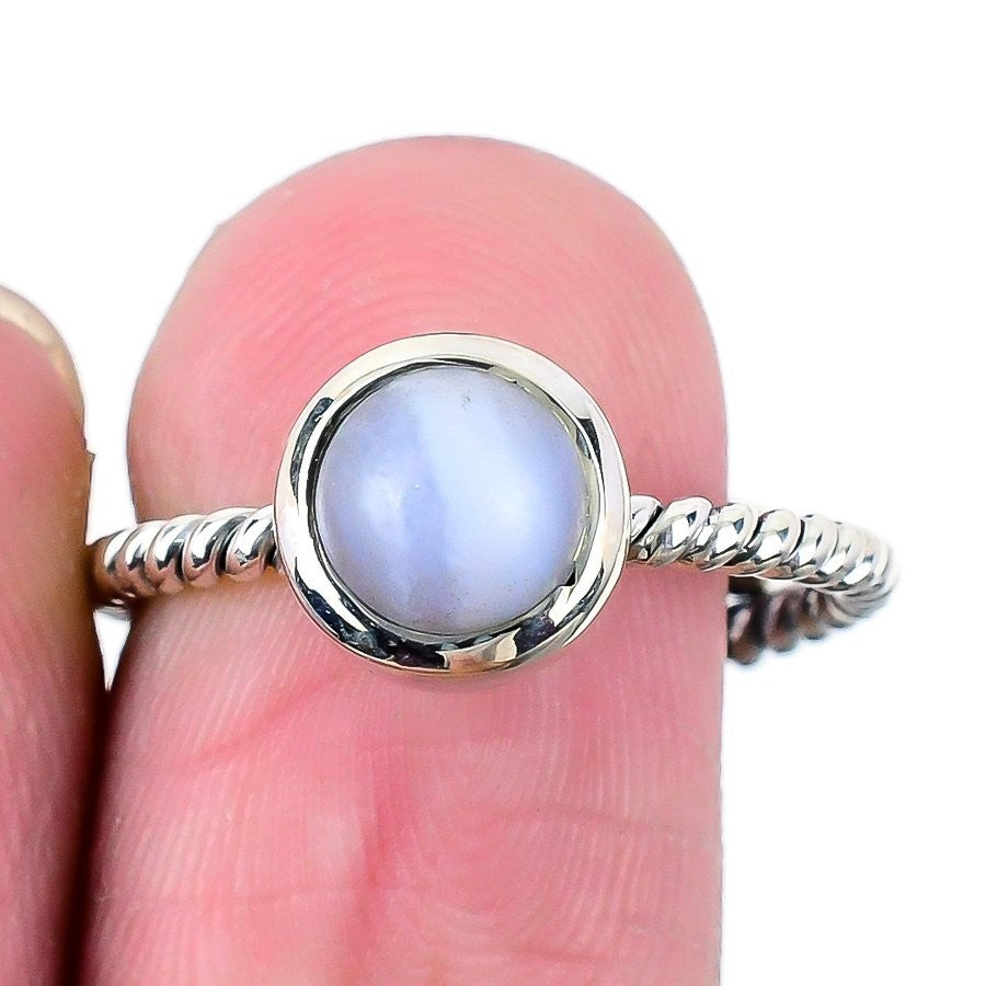Third Eye Chakra Blue Lace Agate Stone 925Ā SolidĀ Silver New Cluster Ring Jewelry