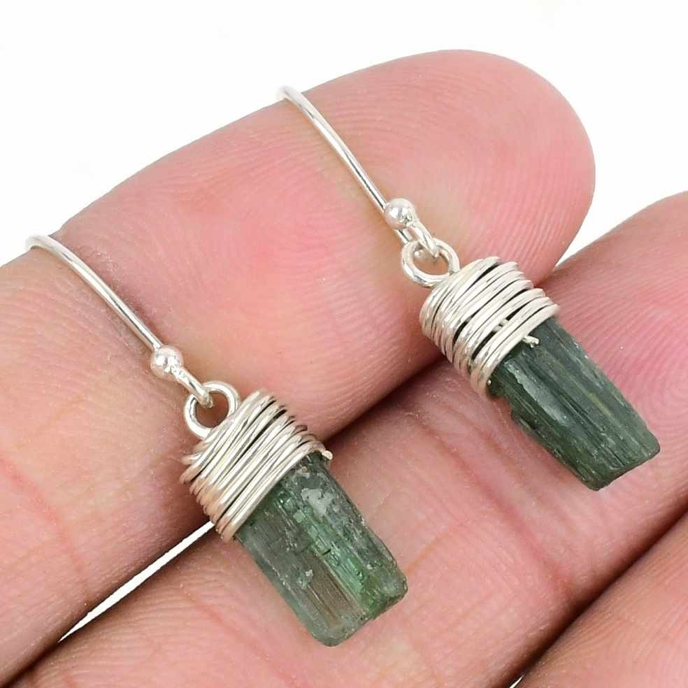 Green Tourmaline Gemstone Birthday New Drop Earrings Jewelry 925 Sterling Silver