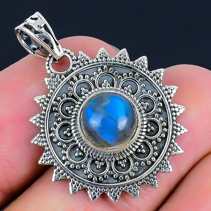 Natural Labradorite 925 Sterling Silver Engagement Handcrafted Pendant Jewelry