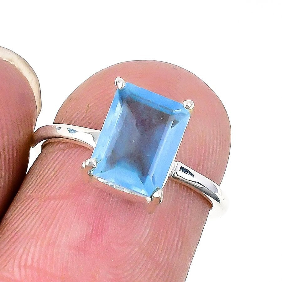 Natural Aquamarine Faceted Sterling Silver New Statement Wife Ethnic Ring Size 6