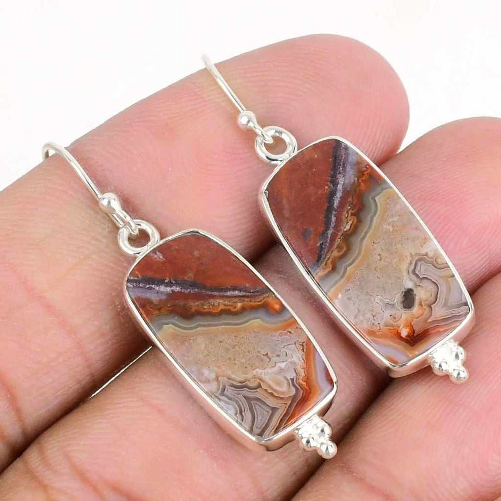 picture jasper Stone Artisan Drop Anniversary Ethnic Boho Earrings 925 Silver