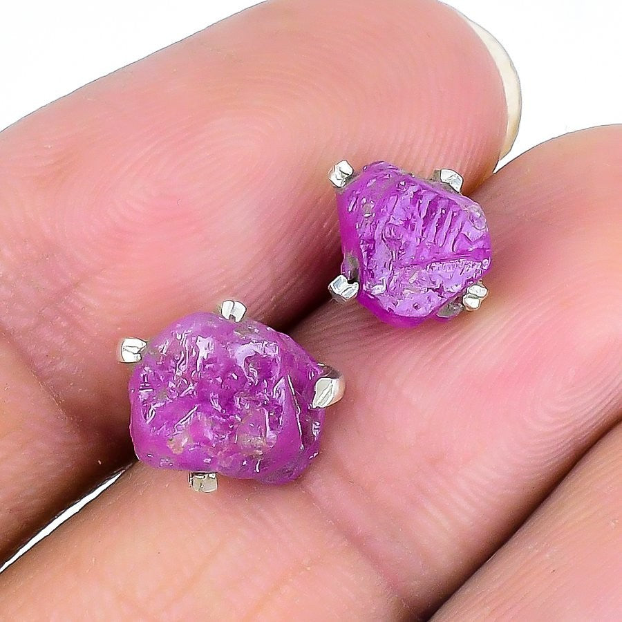 Pink Tourmaline Druzy Gemstone Solid Silver Stud Daughter Gift Earrings Jewelry