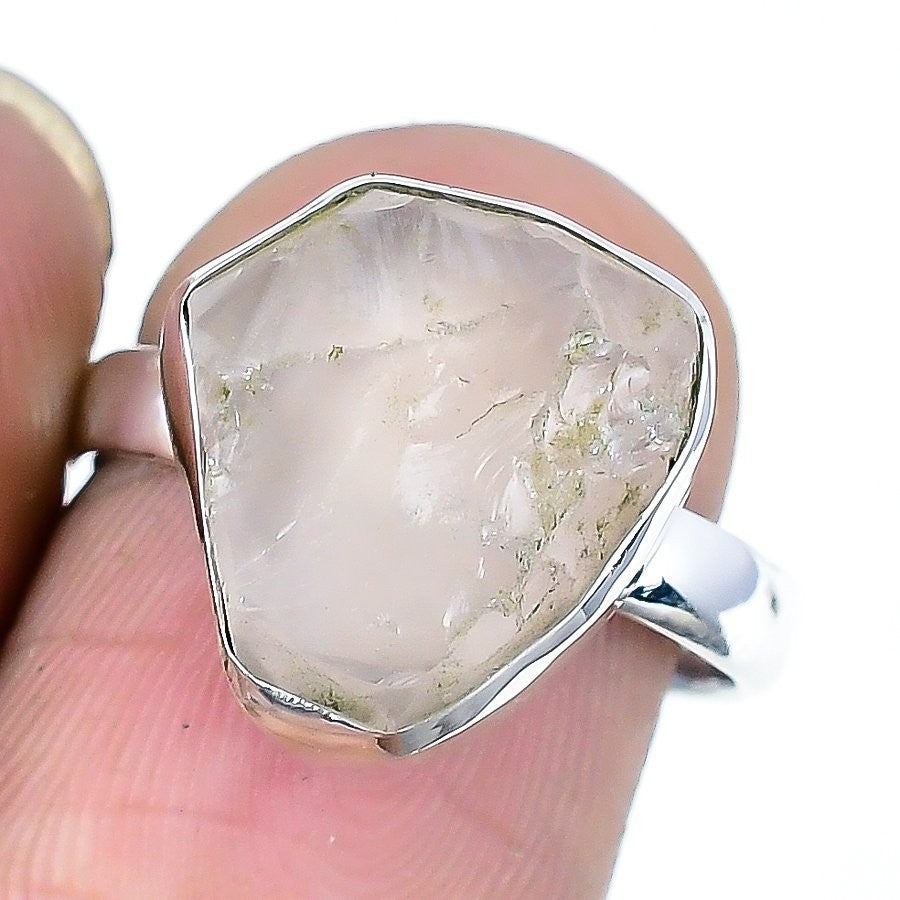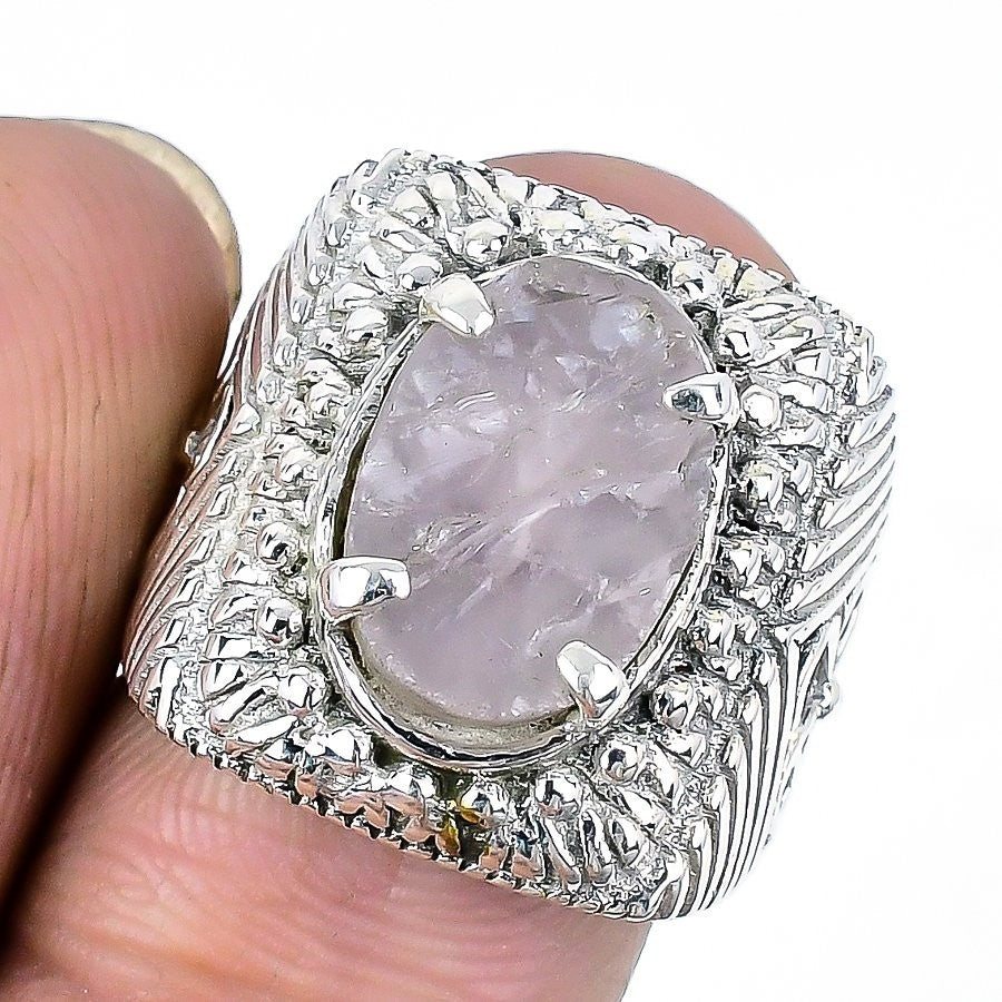 Rose Quartz Druzy Stone Trendy Wife Statement Ring Jewelry 925Ā SolidĀ Silver US 8