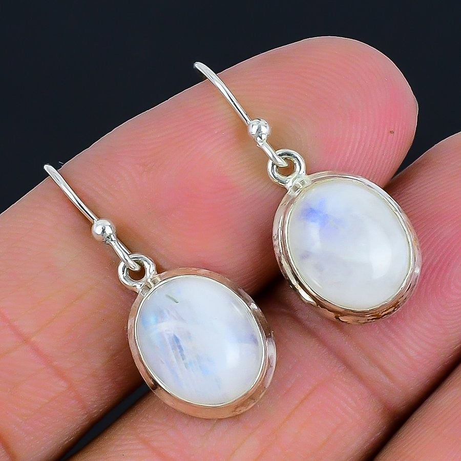Rainbow Moonstone Stone Solid Sterling Silver Wife Drop Dangle Earrings Jewelry
