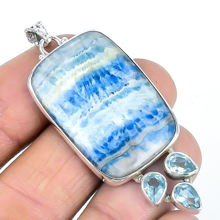 Blue Scheelite Gemstone Solid Sterling Silver Engagement Birthday Sister Pendant