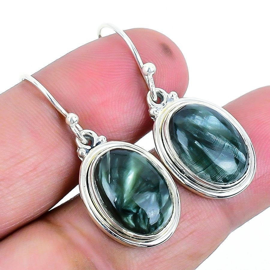 Seraphinite Gemstone Artisan Dangling Wedding Handmade Earrings Sterling Silver