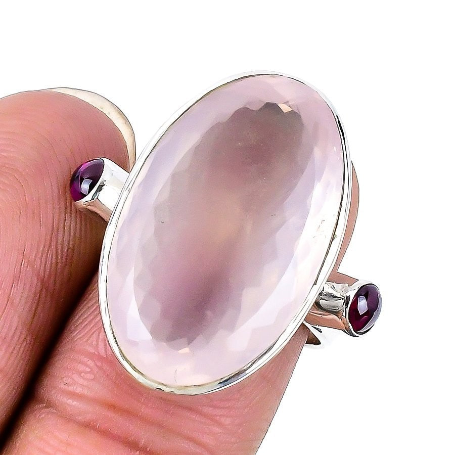 Natural Rose Quartz Faceted Statement Ring Jewelry Size 7 Solid Sterling Silver