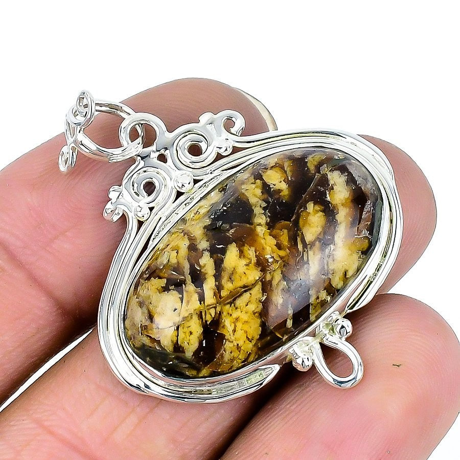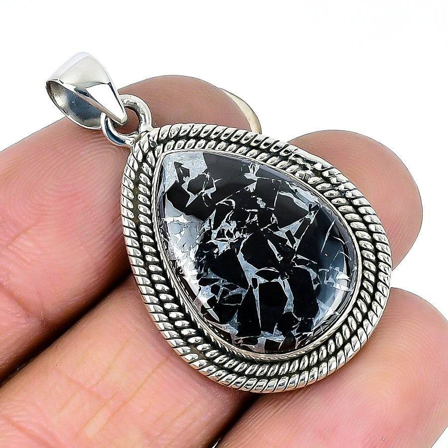 Copper Shungite Composite Stone 925 Sterling Silver Handmade New Pendant Jewelry
