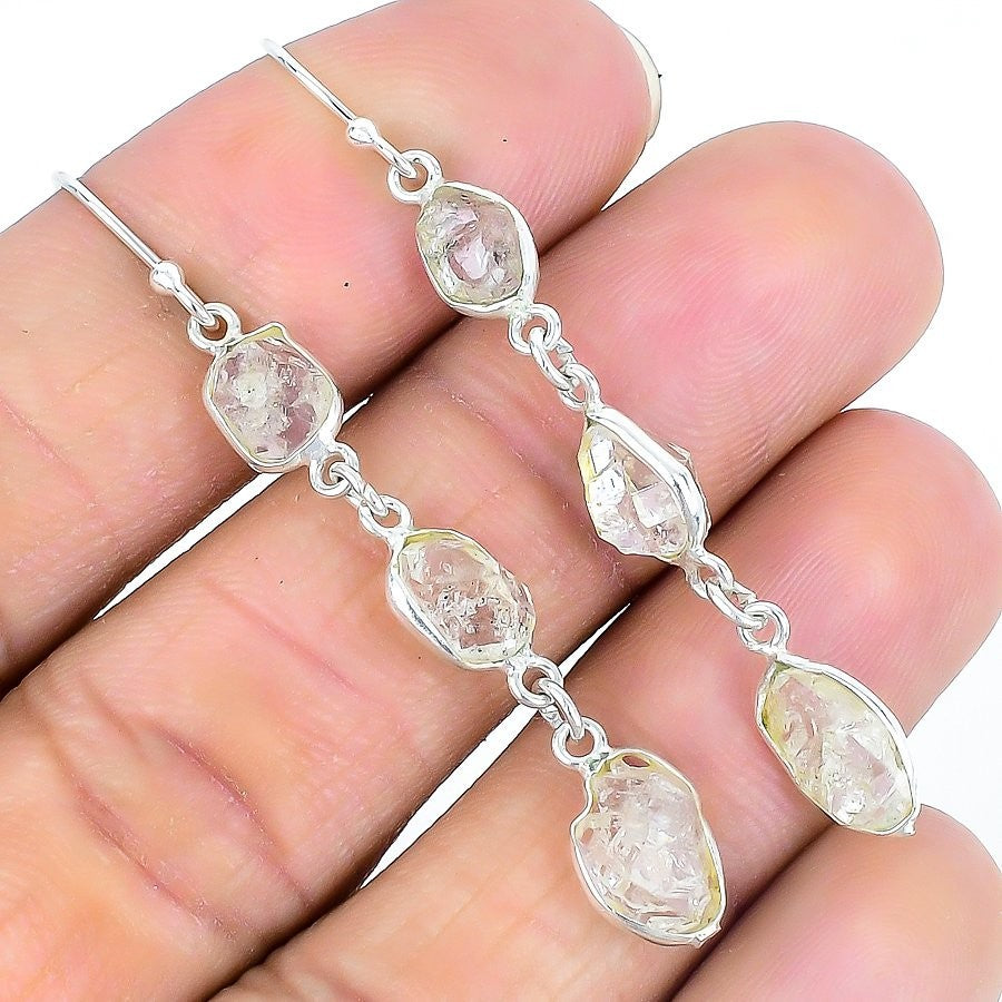 Herkimer Diamond Stone 925Ā SolidĀ Silver Hook Birthday Dangling Earrings Jewelry