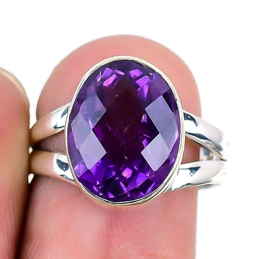 Amethyst Stone Solid Silver Anniversary Daughter Statement Handmade Ring Size 8
