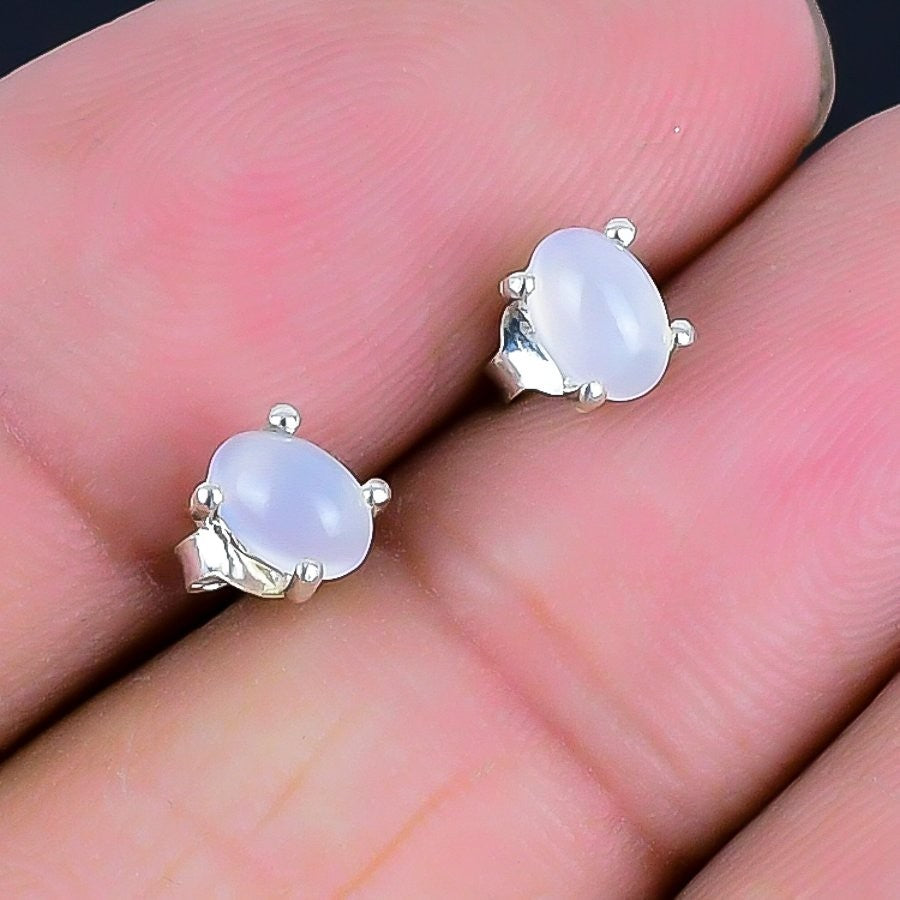 Moonstone Gemstone Handmade Stud Post Elegant New Earrings Solid Sterling Silver