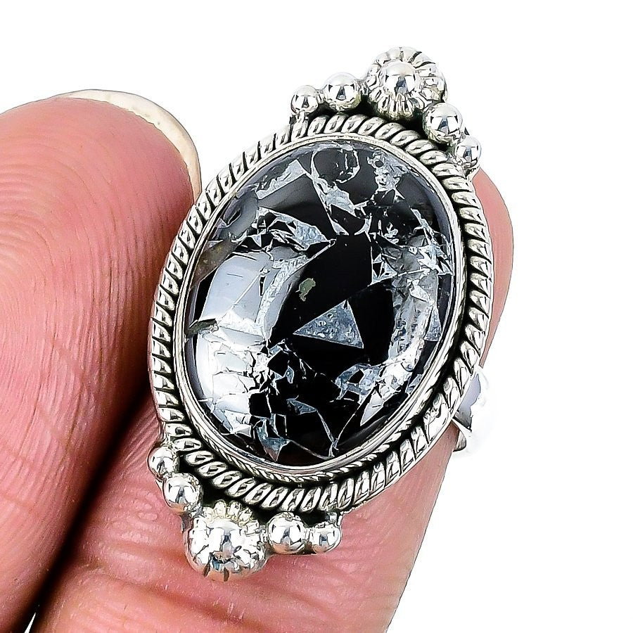 Natural Silver Shungite Composite Statement Ring Jewelry 925Ā SolidĀ Silver US 7