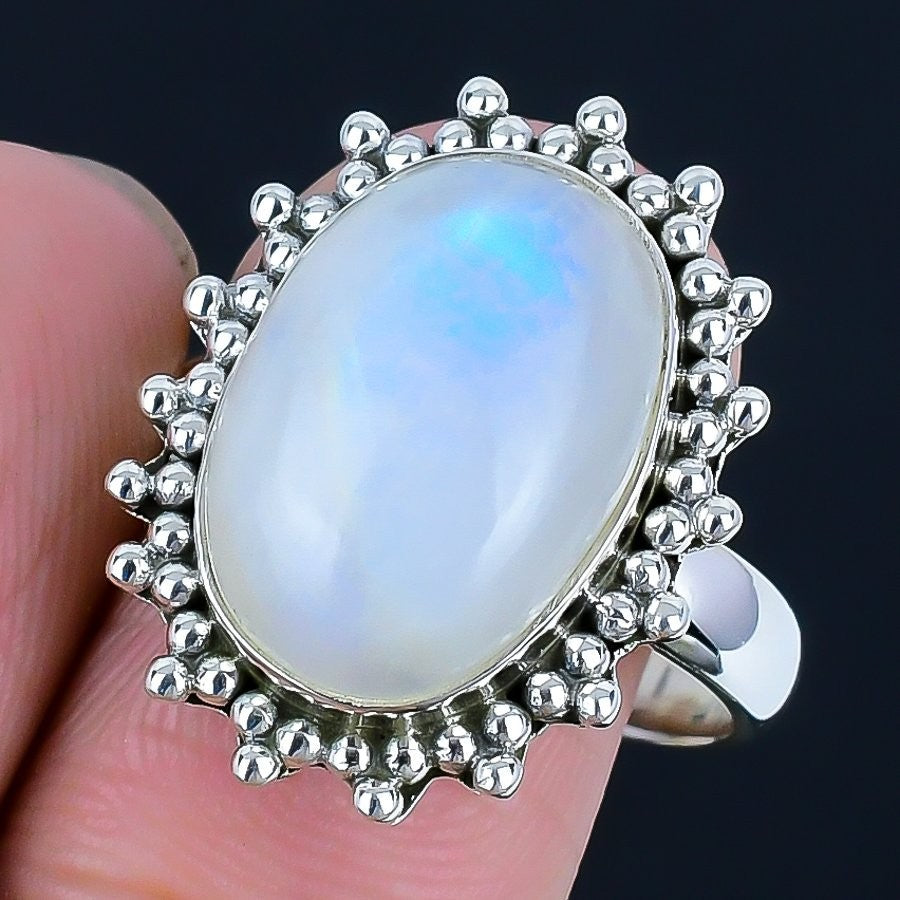 Moonstone Stone 925Ā SolidĀ Silver Cluster Handcrafted Crown Chakra Ring Size 10