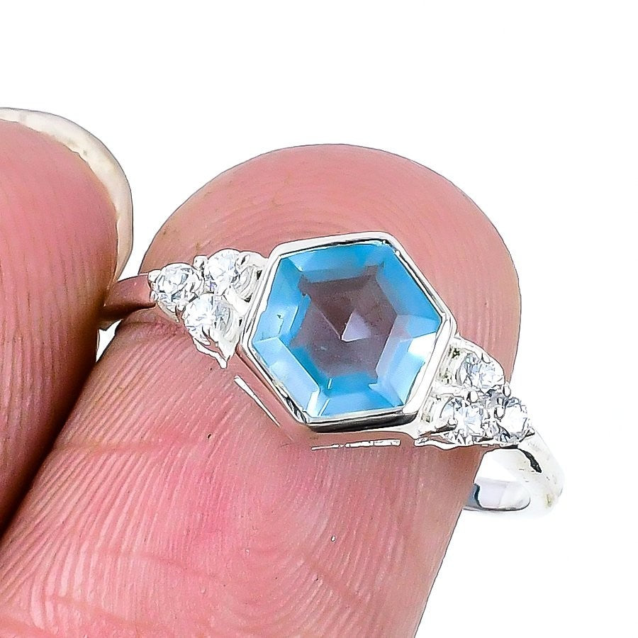 Swiss Blue Topaz Stone Solid Silver Daughters Day Statement Ring Jewelry Size 9