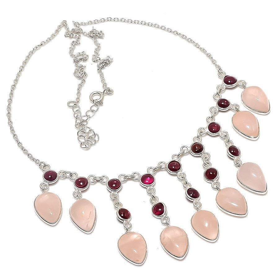 Rose Quartz Stone Solid Sterling Silver Chain Mother Engagement Elegant Necklace