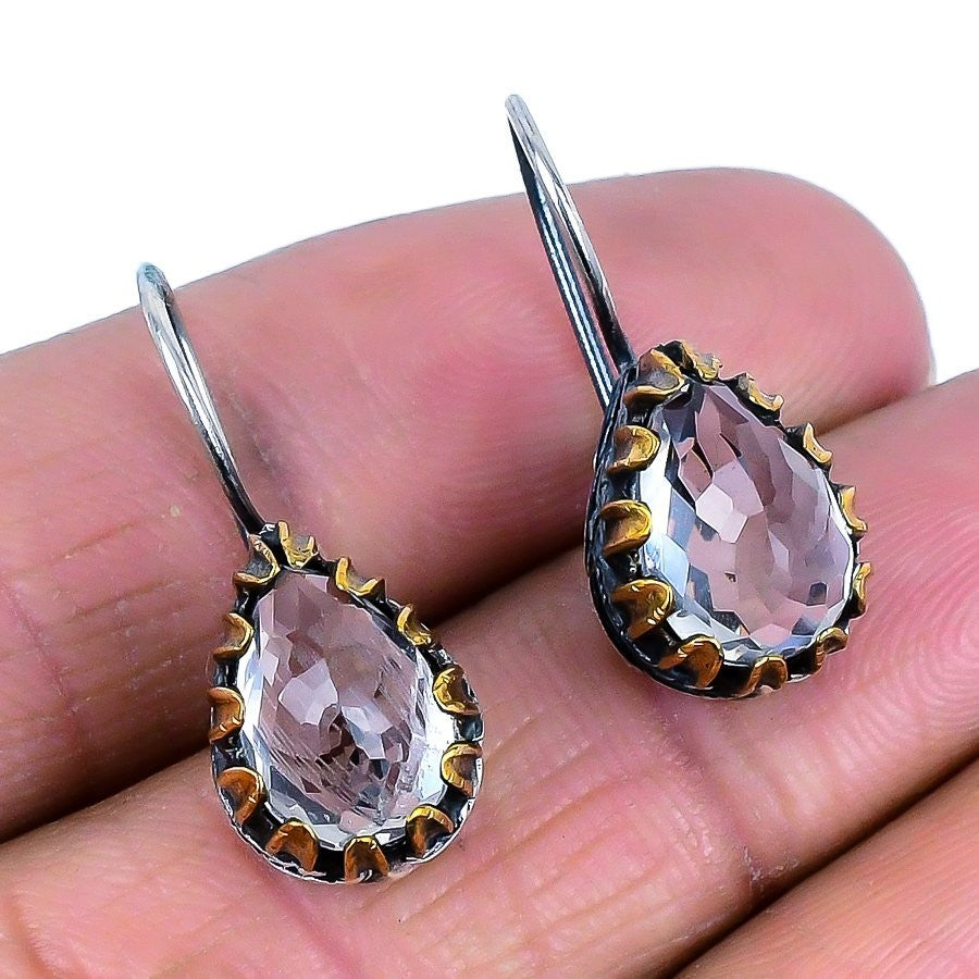 Daughters Day Sale Pink Kunzite Stone 925 Sterling Silver Dangle Drop Earrings