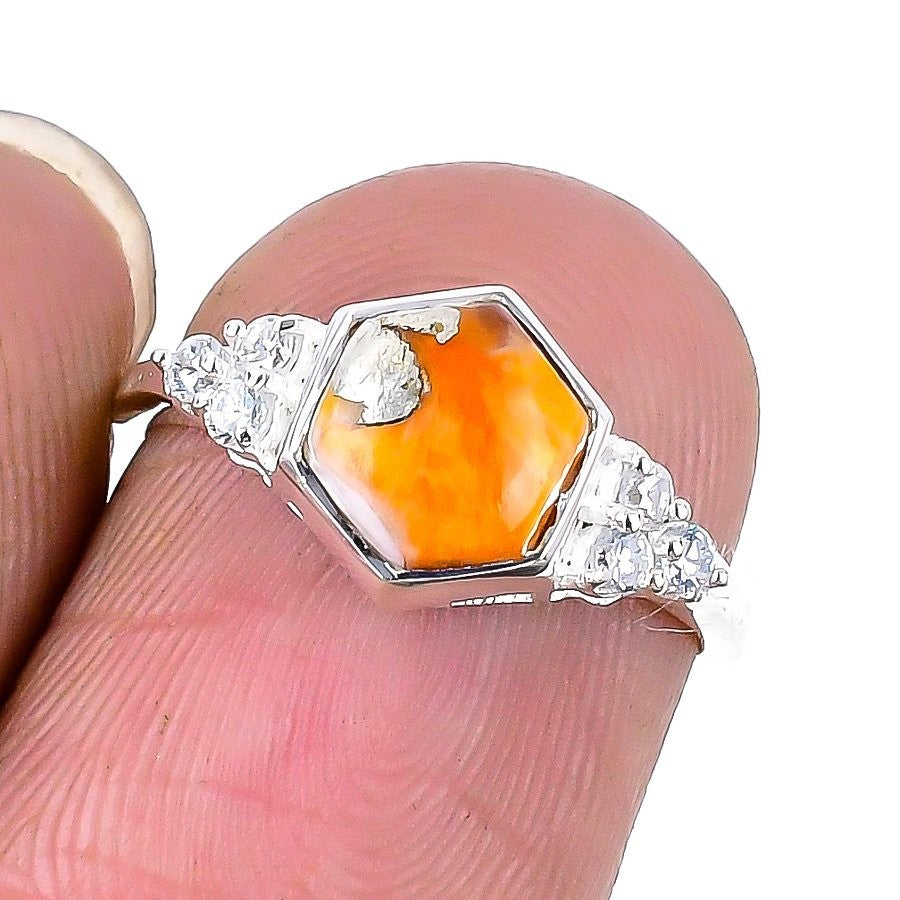 Orange Oyster Turquoise Gemstone 925 Silver Sister Statement Unique Ring US 6