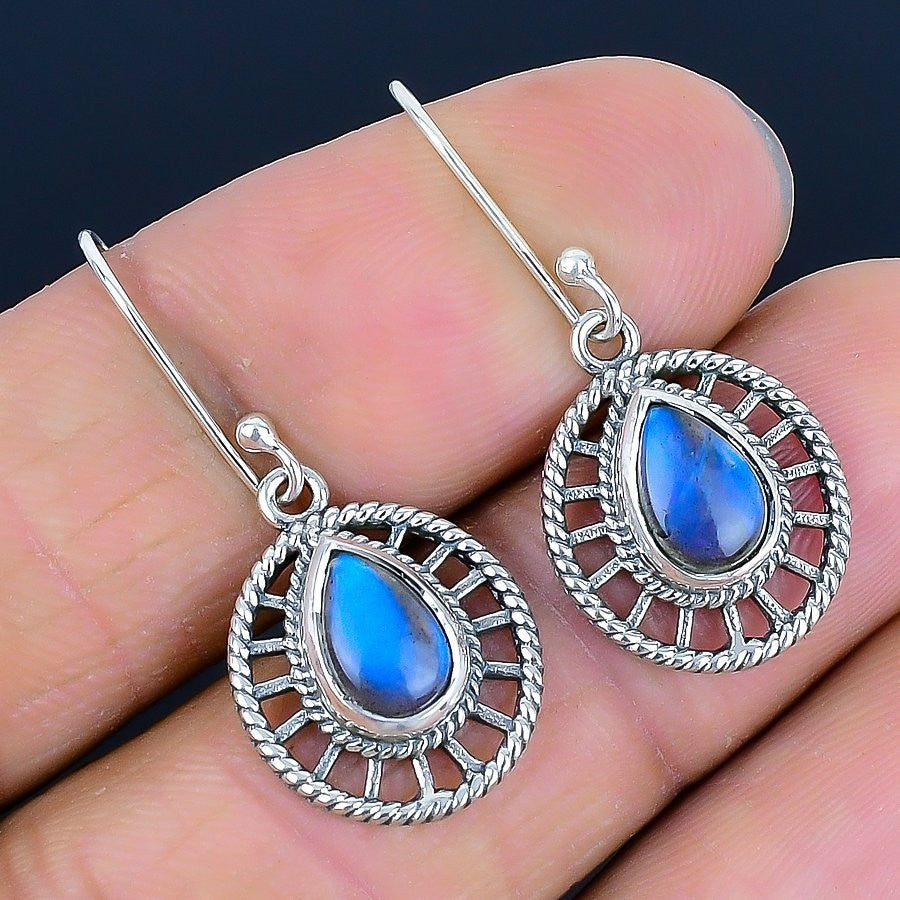 Natural Labradorite 925 Sterling Silver Boho Dangle Anniversary Earrings Jewelry