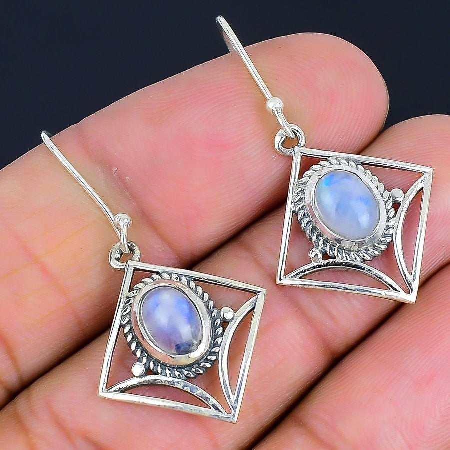Natural Moonstone Sterling Silver Channel Set Drop Hook June Earrings Jewelry