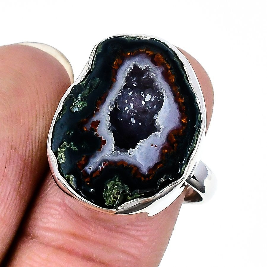 Mexican Coconut Geode Gemstone Solid Silver Handmade Mother Statement Boho Ring