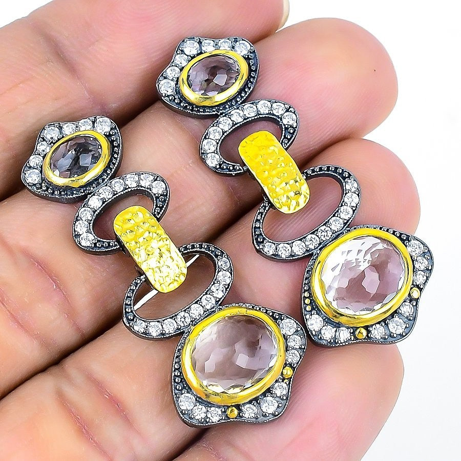 Crystal Quartz Faceted Stone Sterling Silver Dangling Wedding Earrings Jewelry