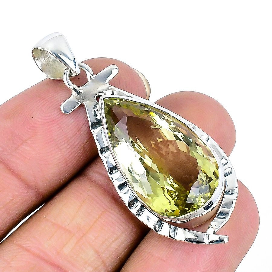 August Peridot Faceted Gemstone Solid Sterling Silver Engagement Pendant Jewelry